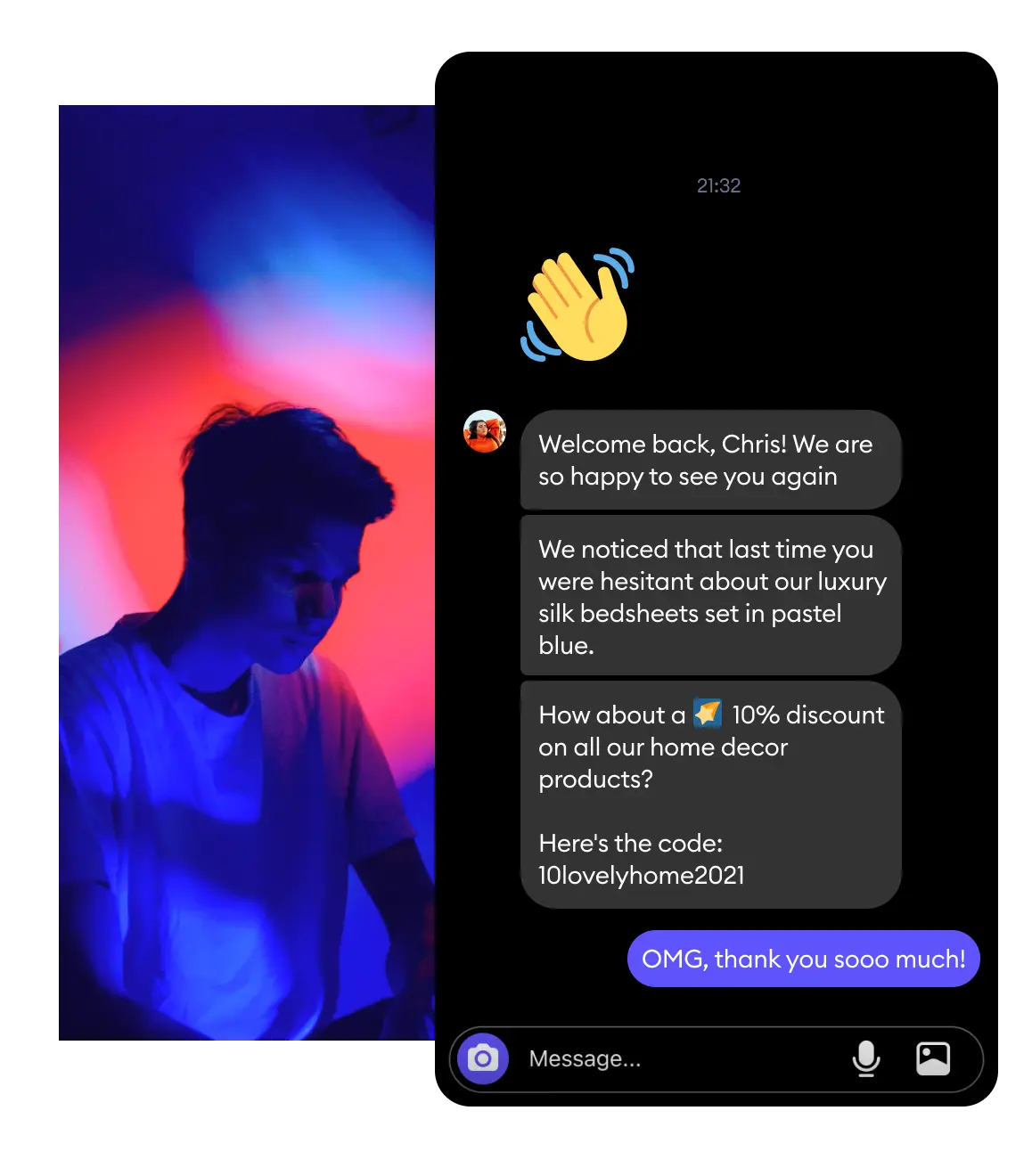 Lenichat triggers tailored offers when they matter—return customers, high‑value carts, and other conditions—so every message feels relevant and nudges buyers to checkout.