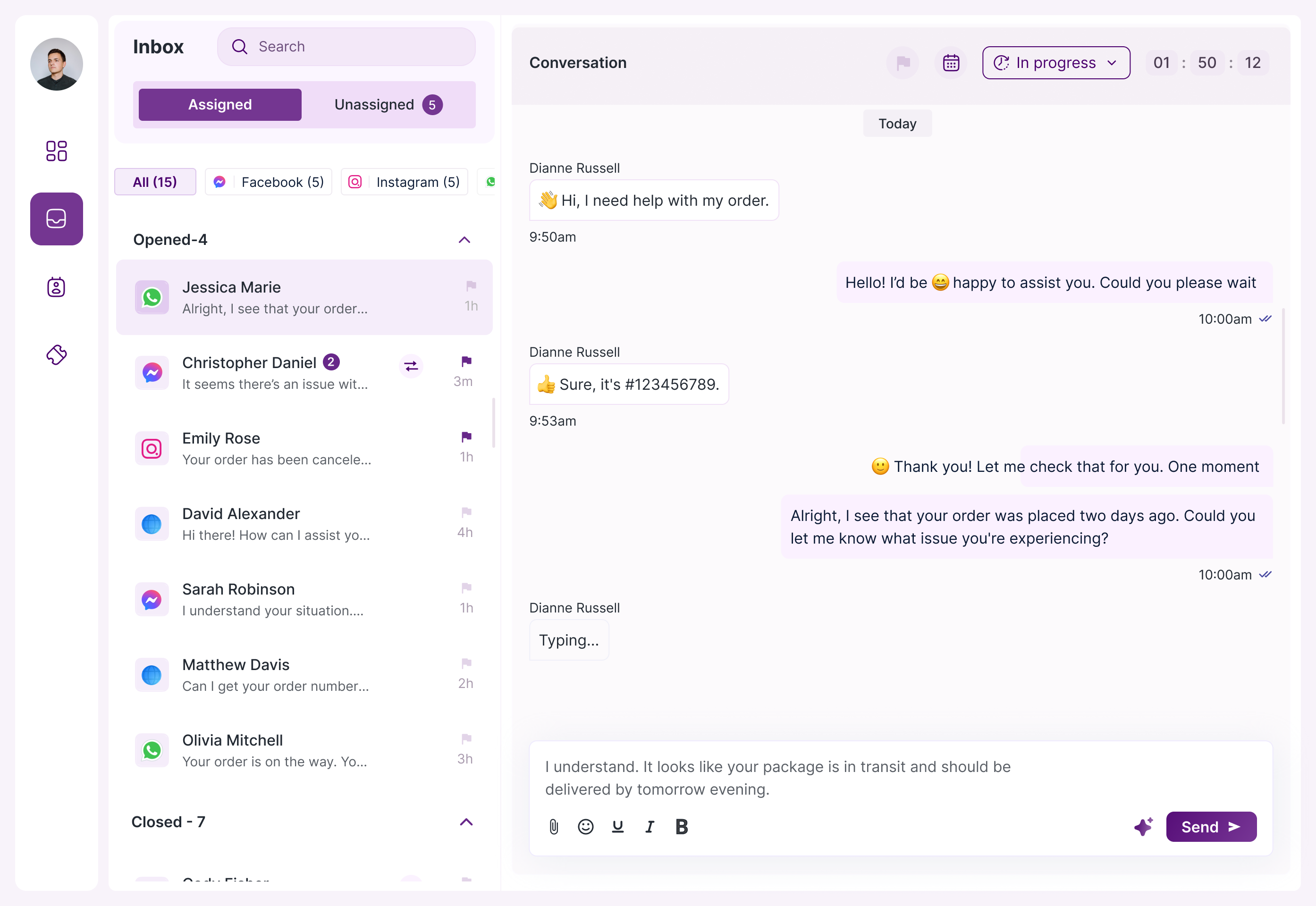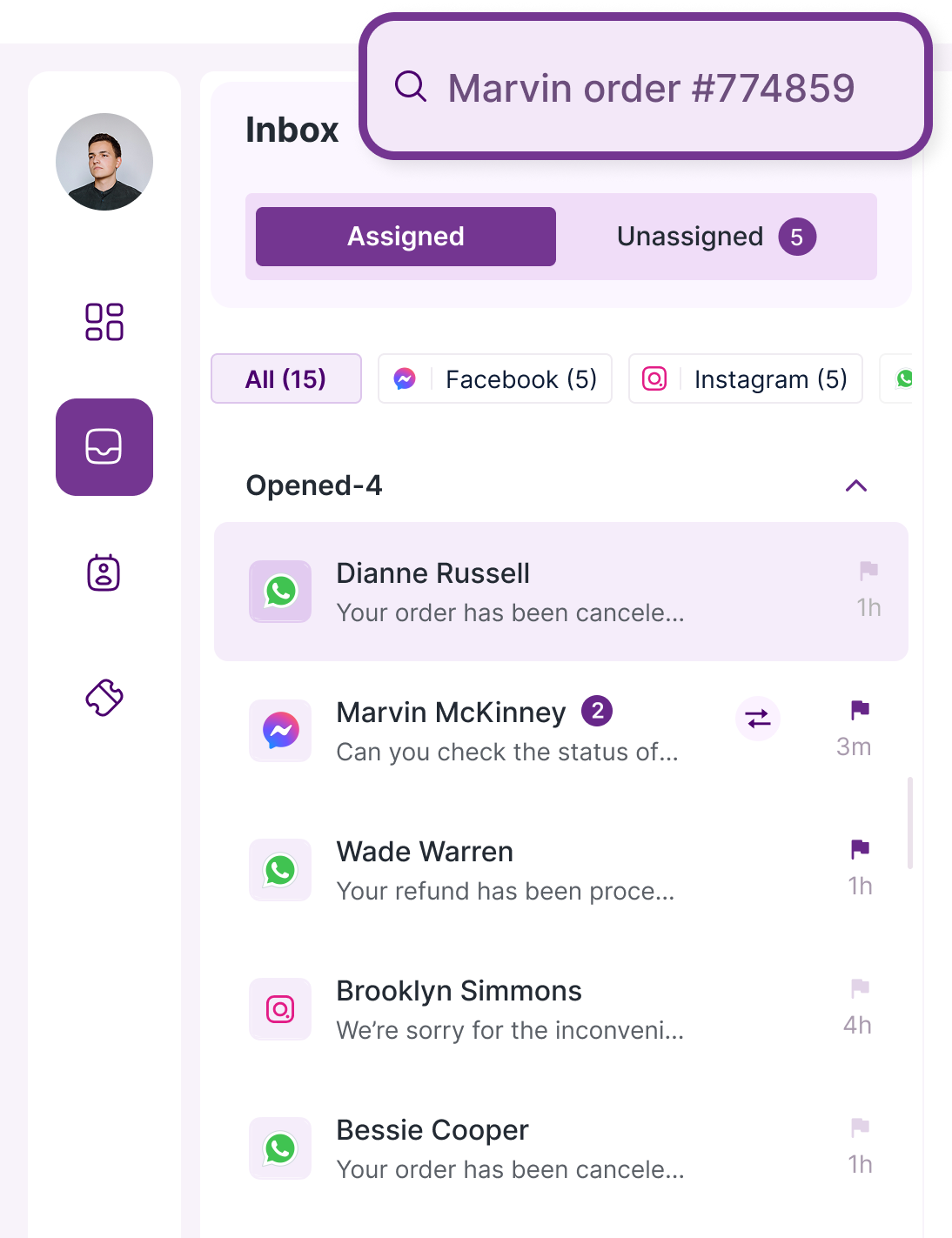 Bring all your customer conversations from WhatsApp, Messenger, Instagram, Email, and more into one easy-to-manage inbox.