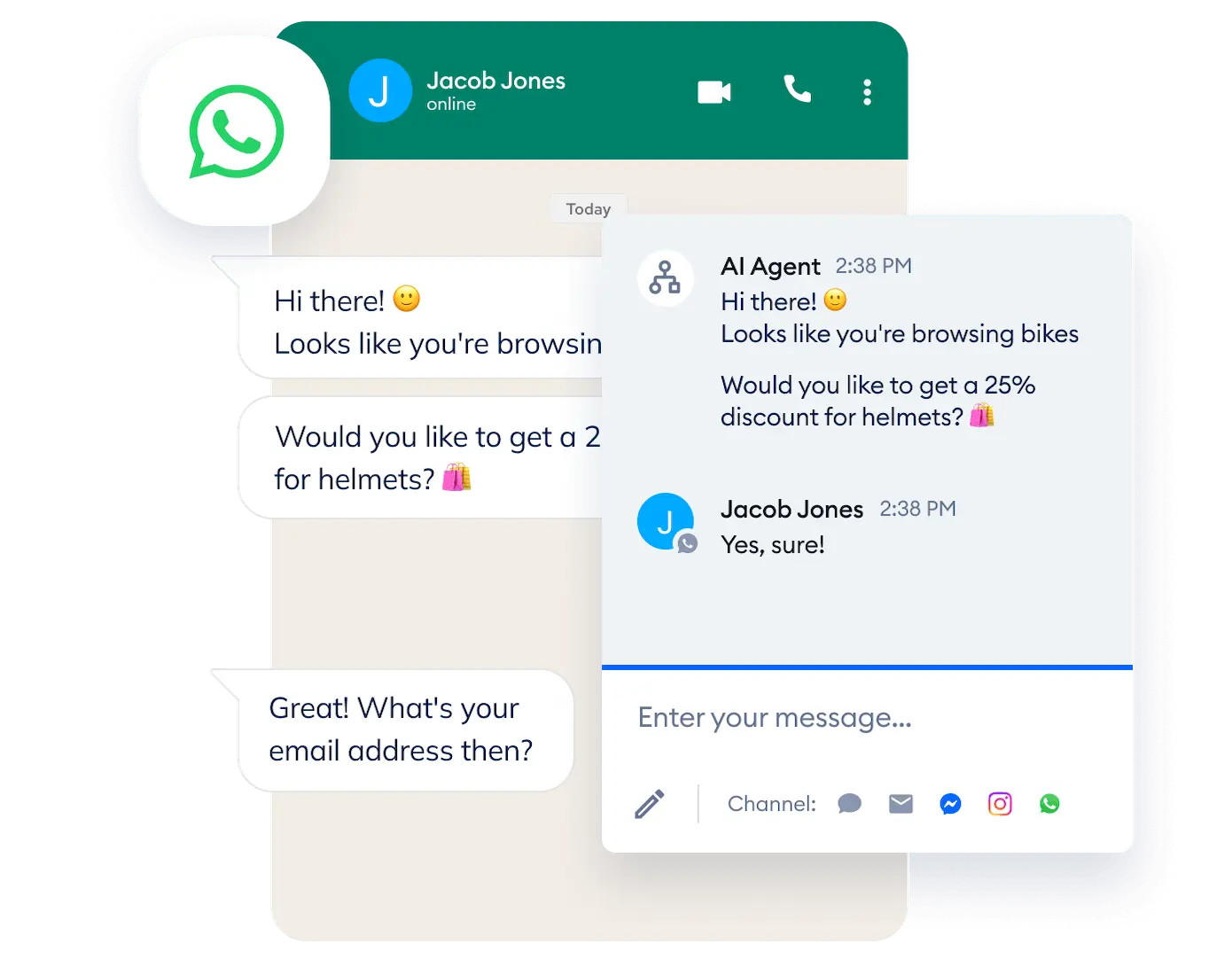 Handle WhatsApp alongside Messenger, Instagram, and Web Chat—no tab-hopping.